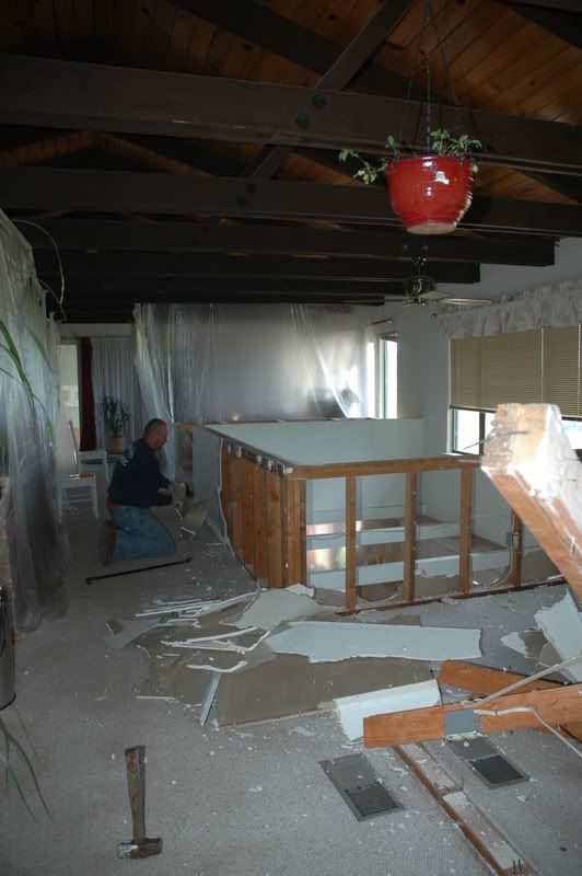 Stopped on the addition bedroom project for now and are working on getting a new A/C system in before it gets warm. Busted out some walls upstairs this last week and DH has been framing off some closet space for the new unit. So half of the upstairs has no electricity and a lot is drapped of with plastic drop cloth.